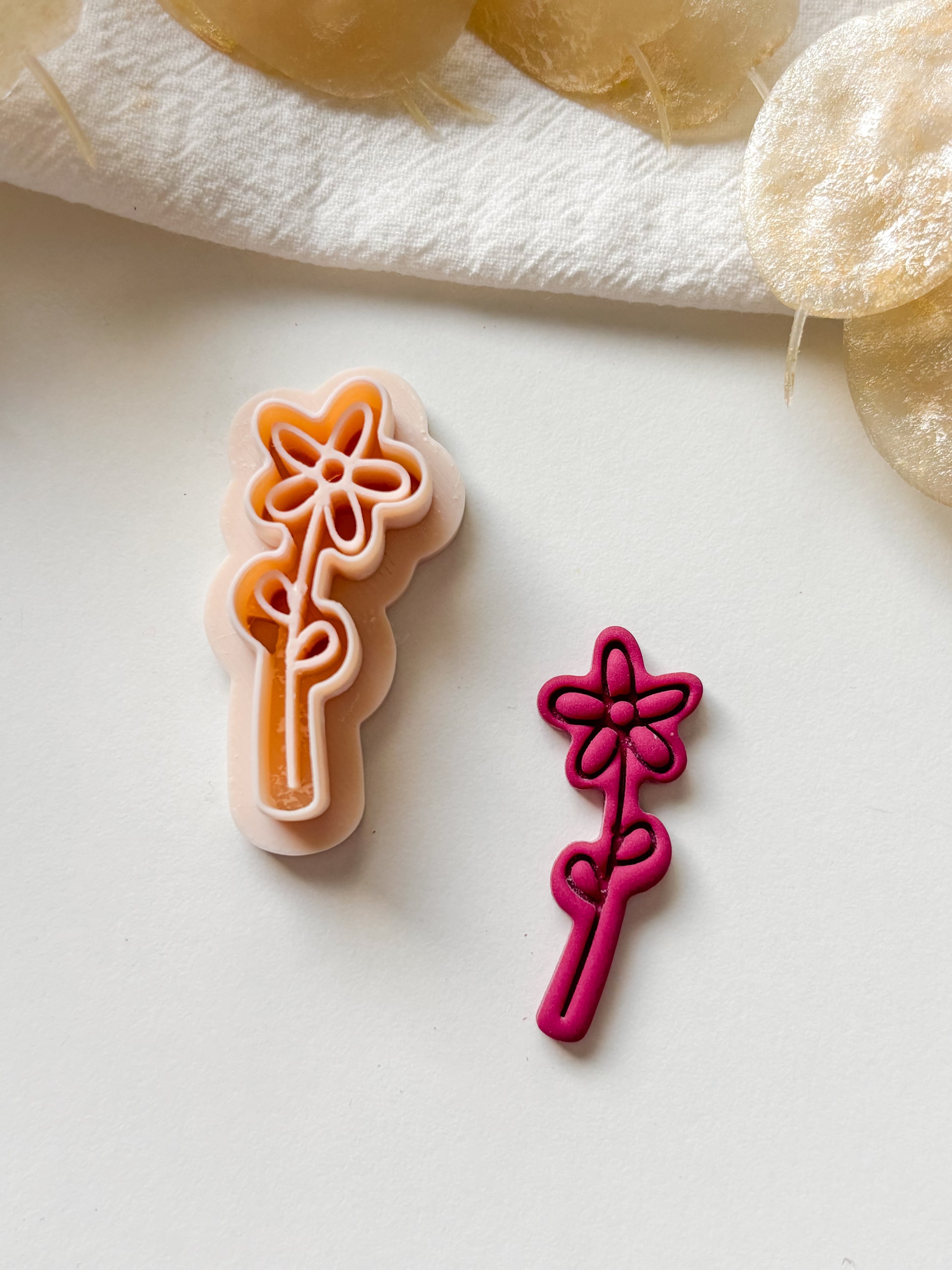 Suosittelemme työstämään savea esim. keramisella sileällä laatalla, sillä näin vältät sen tarttumisen muottiin. Voit käyttää maissitärkkelystä tai talkkia estämään saven tarttumista muottiin.